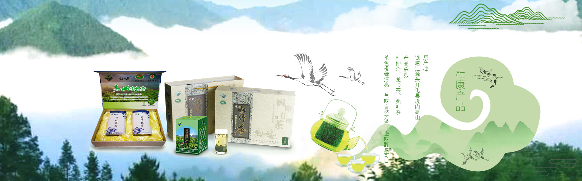 采錢塘江源頭高山基地優質原料研制生產的“杜康牌”開化杜仲茶、開化桑葉茶、開化龍頂茶 等產品,恭候您的惠顧!
